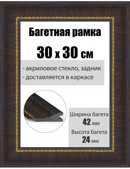 Рамка багетная для картин со стеклом 30 x 30 см, РБ-058