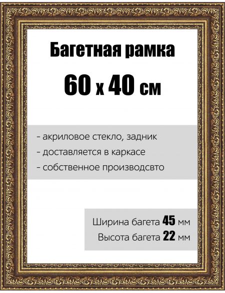 Рамка багетная для картин со стеклом 60 x 40 см, РБ-045