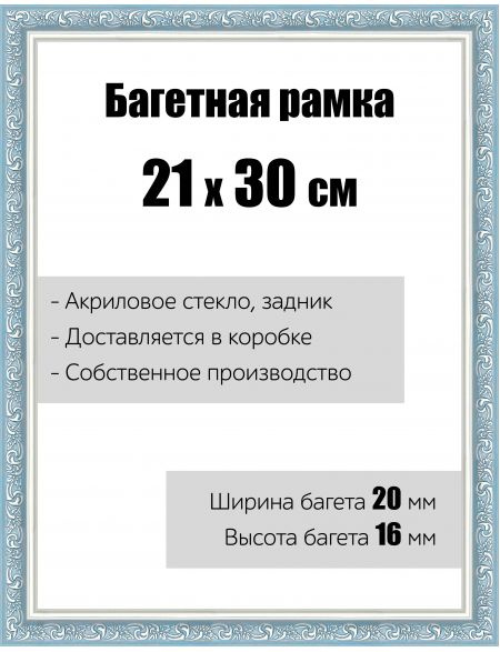 Рамка багетная для картин со стеклом 21 x 30 см, РБ-021