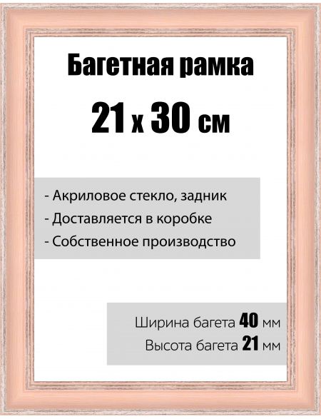 Рамка багетная для картин со стеклом 21 x 30 см, РБ-039