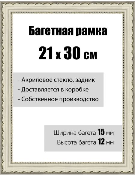Рамка багетная для картин со стеклом 21 x 30 см, РБ-012