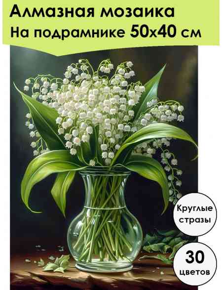 Алмазная мозаика на подрамнике «Букет ландышей» 50x40 см, 30 цветов