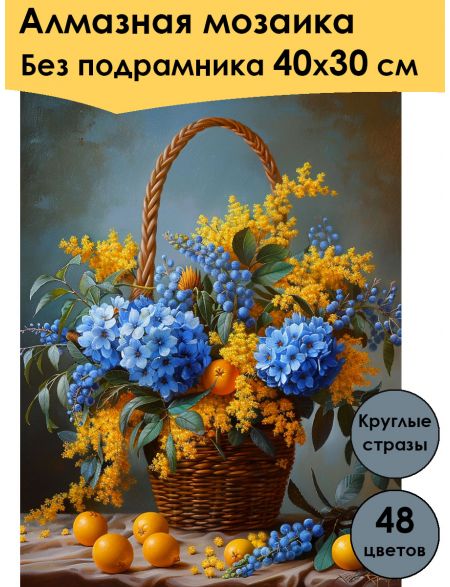 Алмазная мозаика без подрамника «Яблоки в корзинке» 40x30 см, 30 цветов