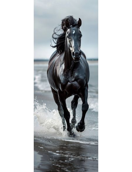 Алмазная мозаика без подрамника «Вороной конь» 100x35 см, 22 цветов
