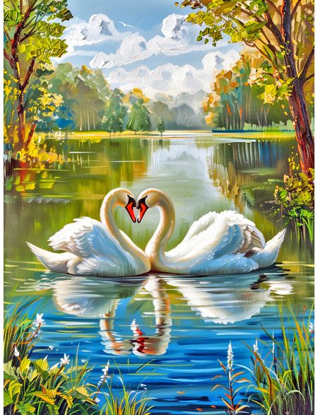 Алмазная мозаика без подрамника «Два лебедя на озере» 40x30 см, 50 цветов