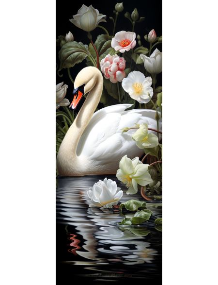 Алмазная мозаика без подрамника «Лебедь в цветах» 100x35 см, 46 цветов