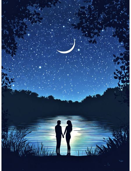 Алмазная мозаика без подрамника «Пара Влюблённых» 40x30 см, 9 цветов