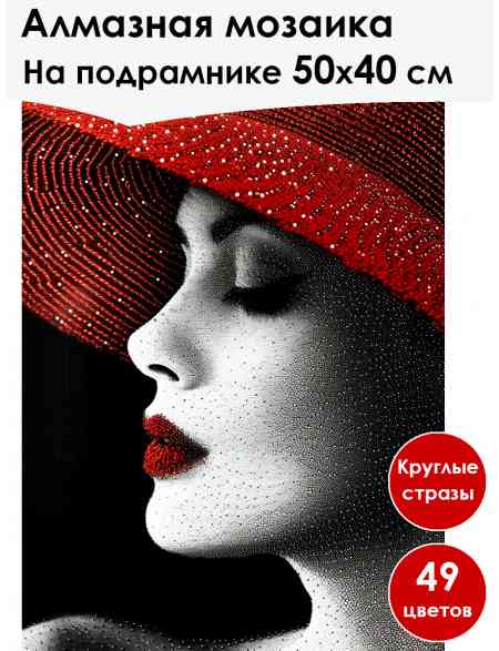 Алмазная мозаика на подрамнике «Девушка в красном» 50x40 см, 49 цветов