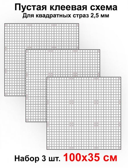 Клеевая схема для алмазной мозаики 100x35 см, 2.5 мм квадратные стразы. Набор из 3 штук