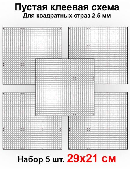 Клеевая схема для алмазной мозаики 29x21 см, 2.5 мм квадратные стразы. Набор из 5 штук