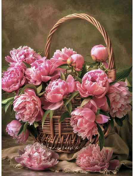 Алмазная мозаика без подрамника «Пионы» 90x70 см., 50 цветов