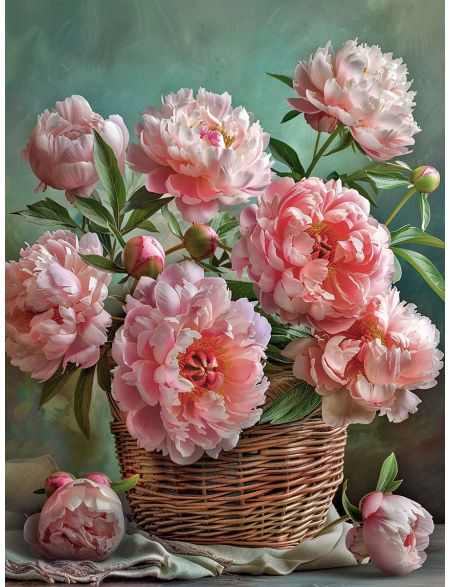 Алмазная мозаика без подрамника «Коралловые пионы» 40x30 см, 30 цветов
