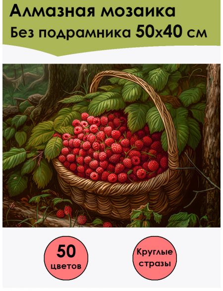 Алмазная мозаика без подрамника «Земляника Лесная» 50x40 см, 50 цветов