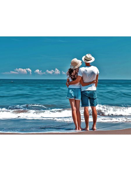 Алмазная мозаика без подрамника «Двое у моря» 130x100 см