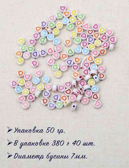Бусины «Сердечки», белые, диаметр 7 мм. упаковка 50 гр.