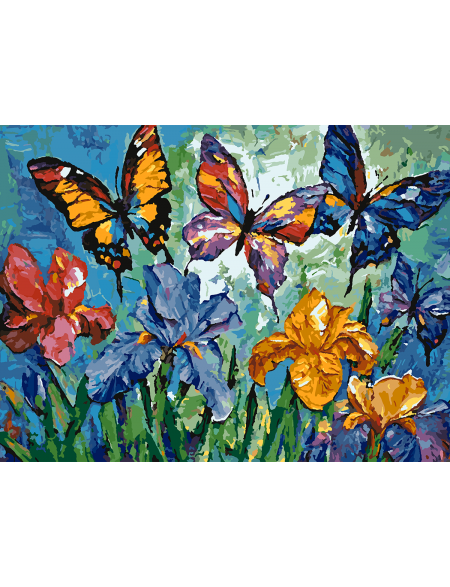 Картина по номерам без подрамника «Бабочки и ирисы» 40x30 см