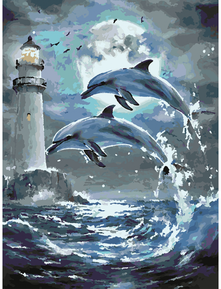 Картина по номерам на подрамнике «Дельфины и луна» 50x40 см