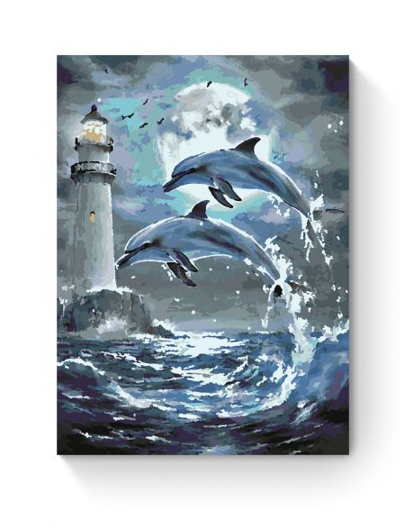 Картина по номерам на подрамнике «Дельфины и луна» 40x30 см