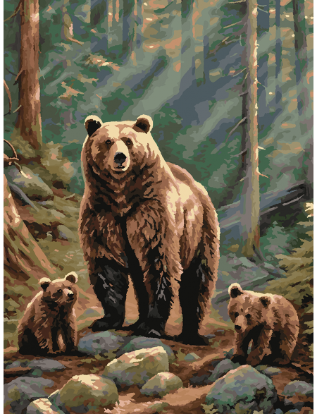 Картина по номерам без подрамника «Мишки в лесу» 70x50 см
