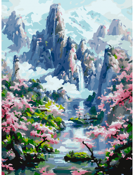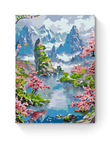 Картина по номерам на подрамнике «Сакура в горах» 40x30 см