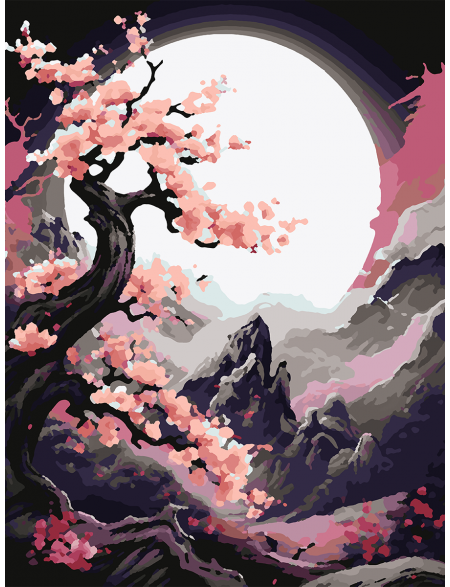 Картина по номерам без подрамника «Сакура в горах» 40x30 см