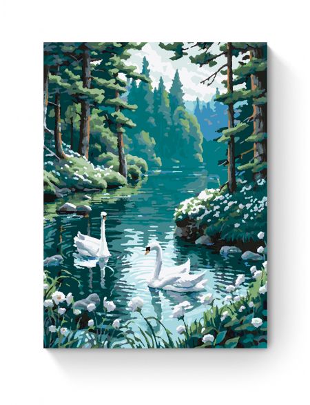 Картина по номерам на подрамнике «Лебеди на озере» 50x40 см