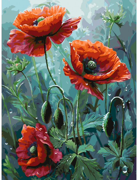 Картина по номерам без подрамника «Маки под дождем» 50x40 см