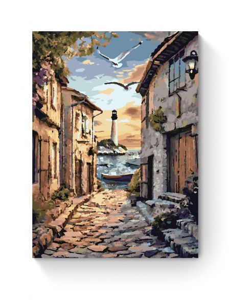 Картина по номерам без подрамника «Улочка у моря» 70x50 см