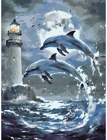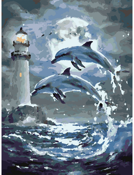 Картина по номерам без подрамника «Дельфины» 50x40 см