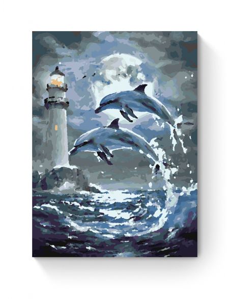 Картина по номерам на подрамнике «Дельфины» 50x40 см