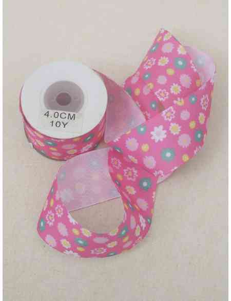 Лента репсовая «Цветочки» ярко-розовая 40 мм 9,14 м