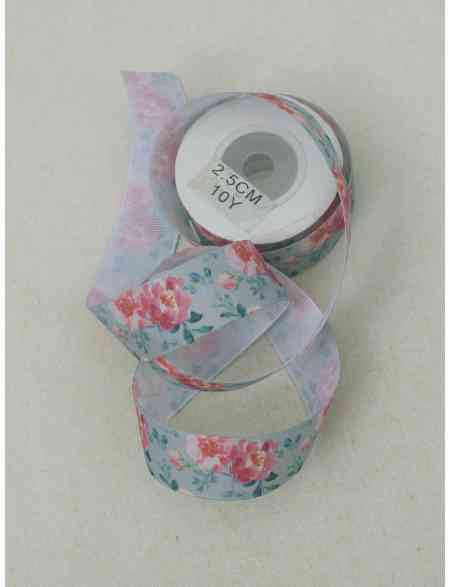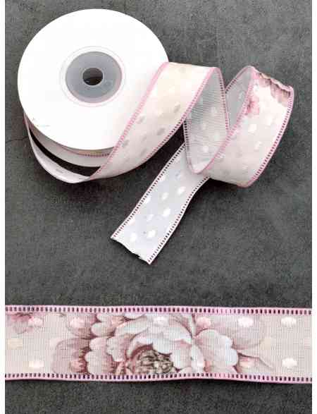 Лента репсовая «Цветочки» розовая 40 мм 9,14 м