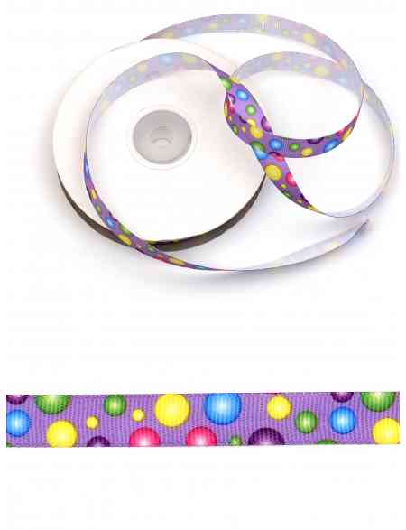 Лента репсовая 12 мм «Цветные шары» лиловая 26 м