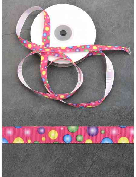 Лента репсовая 12 мм «Цветные шары» розовая 26 м