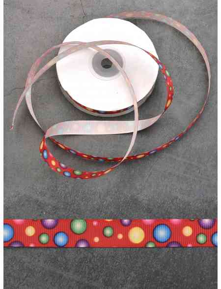 Лента репсовая 12 мм «Цветные шары» красная 26 м