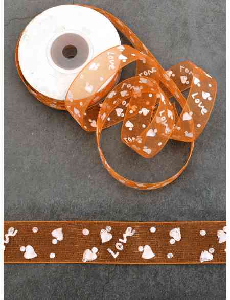 Лента репсовая 25 мм оранжевая с сердечками 9,14 м