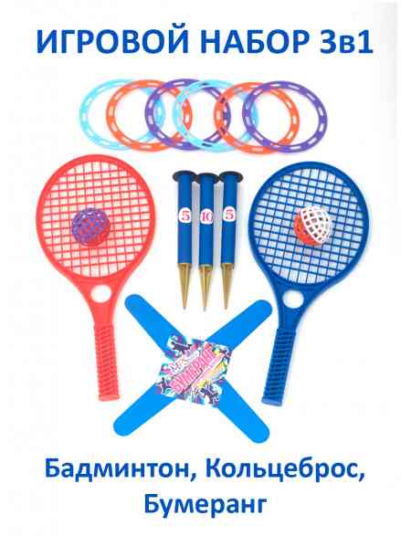 Набор игровой «Летний набор» 3 в 1 (бадминтон, кольцеброс и бумеранг)